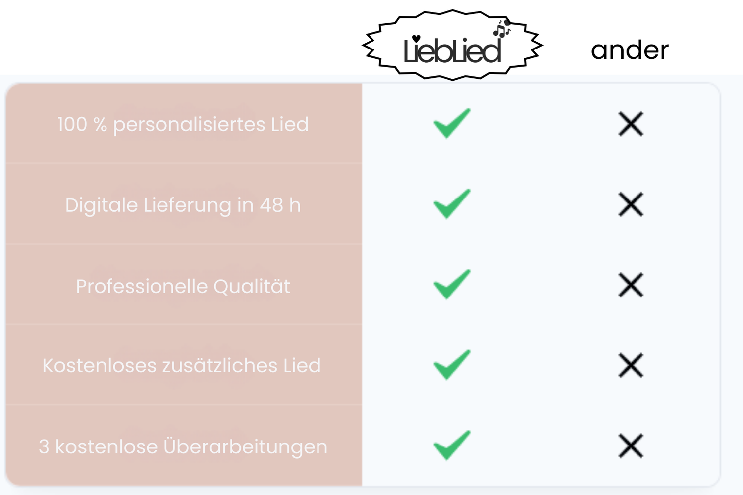 Zusätzlich erhältst du bis zu 3 kostenlose Überarbeitungen, damit dein Lied genau so wird, wie du es dir vorstellst. Wenn du Textteile anpassen oder bestimmte Aspekte ändern möchtest, ist unser Team für dich da. 😊